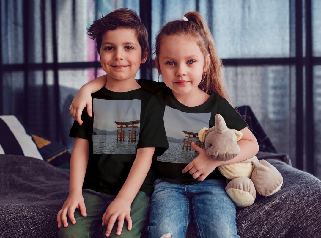 tシャツ キッズ 半袖 黒地 ブラック デザイン 90 100 110 120 130 140 150 Tシャツ ティーシャツ T shirt 上記で使用したデザインTシャツはこちら▼キッズ用Tシャツ ブラック全デザインはこちらから▼ ▼キッズ用Tシャツ グレー・ホワイト全デザインはこちらから▼商品特徴・15000デザインから選べる!デザインTシャツ! ・洗濯も赤ちゃんにも安心なウェアプリント UltraChrome DGインクは洗濯に対しても色落ちが少なく、高い堅牢度が実証されています。