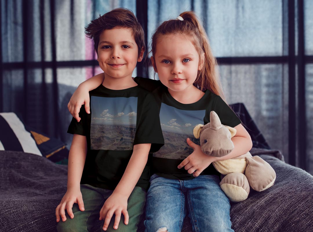 tシャツ キッズ 半袖 黒地 ブラック デザイン 90 100 110 120 130 140 150 Tシャツ ティーシャツ T shirt 上記で使用したデザインTシャツはこちら▼キッズ用Tシャツ ブラック全デザインはこちらから▼ ▼キッズ用Tシャツ グレー・ホワイト全デザインはこちらから▼商品特徴・15000デザインから選べる!デザインTシャツ! ・洗濯も赤ちゃんにも安心なウェアプリント UltraChrome DGインクは洗濯に対しても色落ちが少なく、高い堅牢度が実証されています。